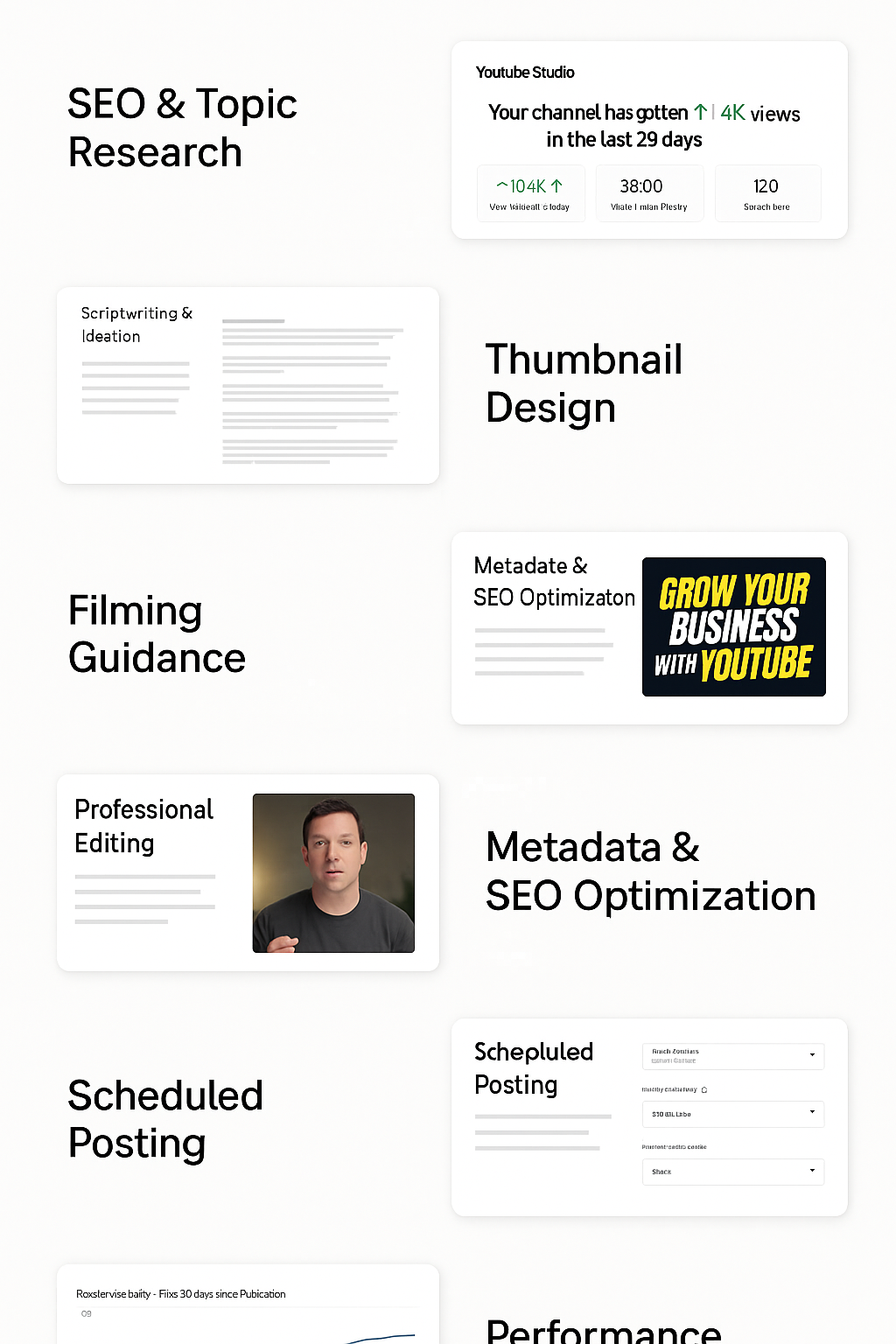 The YouTube Content System is our fully managed, performance-driven video engine for brands that sell expertise. It’s not about going viral. It’s about building a predictable pipeline of inbound leads, authority, and buyer trust.